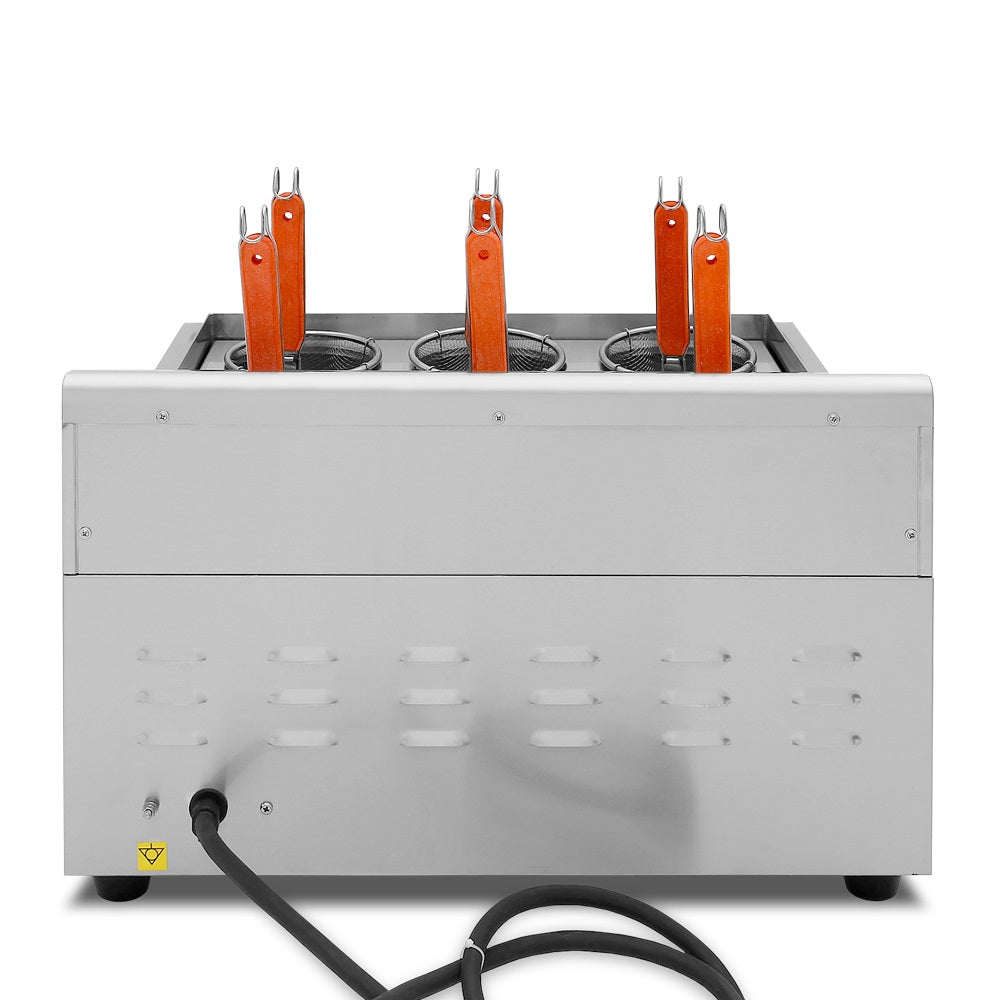 Cocinador de Pasta Electrico 600*580*410mm 3kW 220V/60Hz. Para 6 porciones a la vez. Con grifos. Termostatos 0-110 °C. Tanque de Coccion: 200*155*160mm