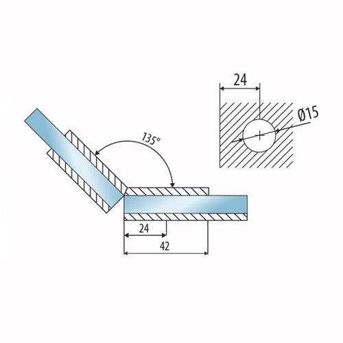 Conector Vidrio- Vidrio 135 grados Color negro. Bronce alta calidad.