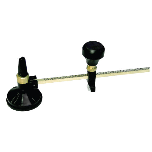 Cortador de círculo con ventosa, con tanque de aceite, fabricado con precisión, unas flechas cruzadas en la copa permiten el posicionamiento exacto del círculo en el centro exacto del corte, varilla calibrada con precisión, larga vida, palanca no abrasiva, cómoda operación de corte por su perilla de agarre rotatoria, Rueda de corte Viscor HM carburo de tungsteno Ø4.0x1.0xØ1,30mm. Cabeza de corte rotatoria delgada con diámetro 85mm.