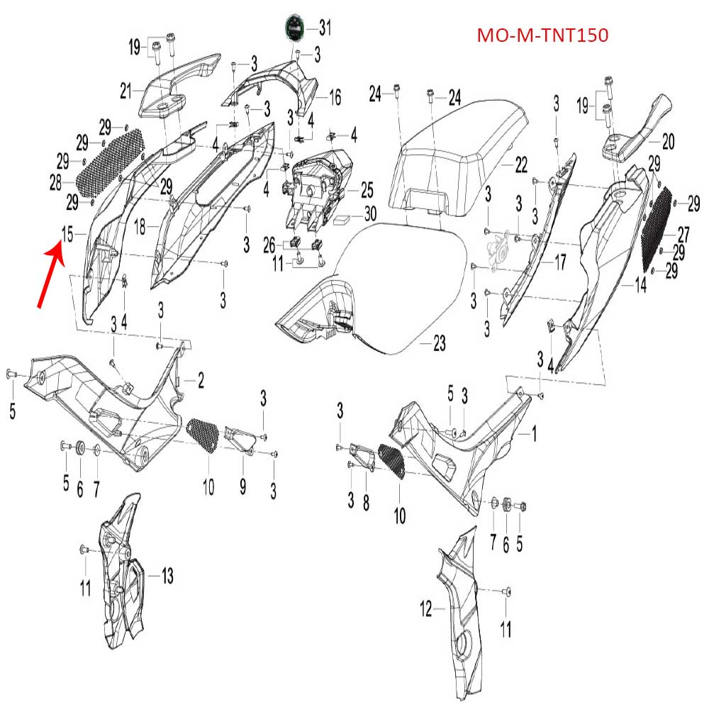 | *Nombre | Covertor trasero derecho blanco con calcomanias (TNT150) |
