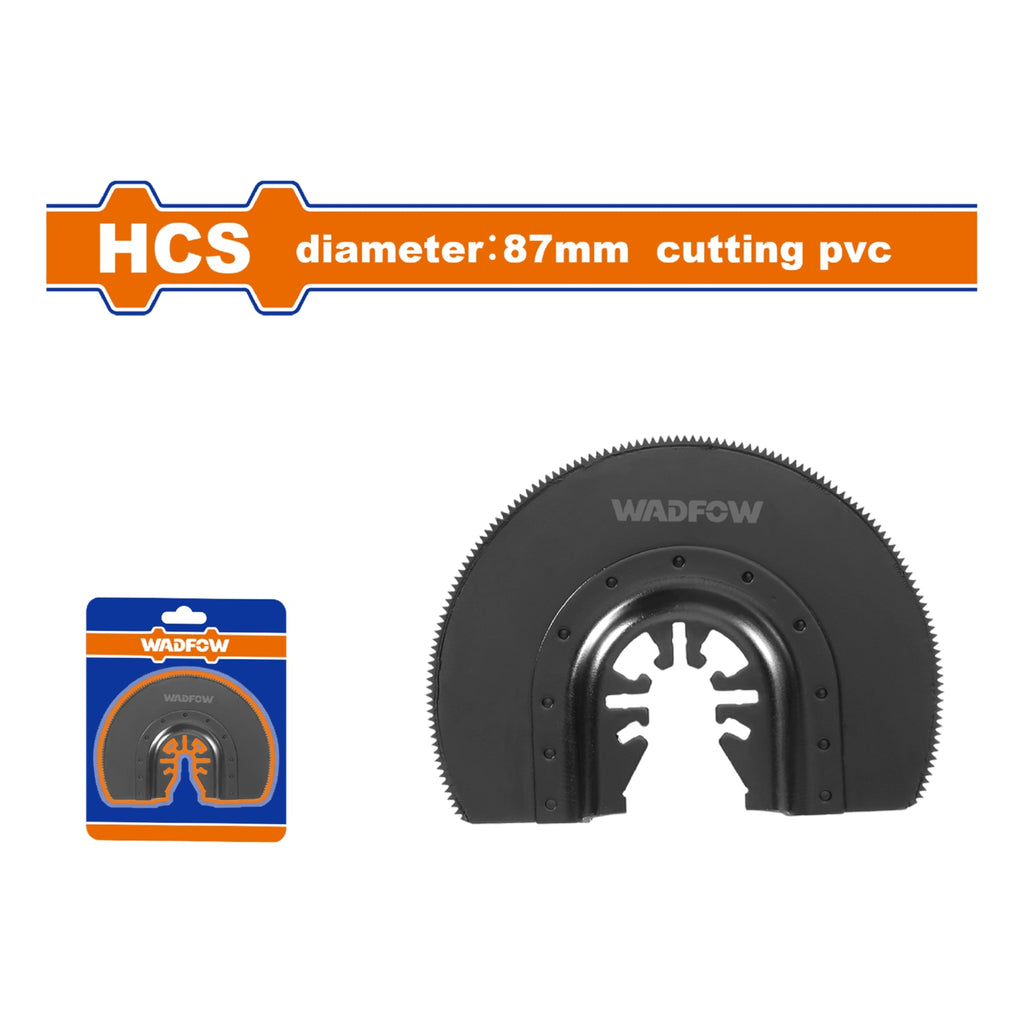 | *Nombre | Cuchilla para sierra Oscilante HCS.Corta PVC. Díametro:87mm. Diseño Semi-circulo. |