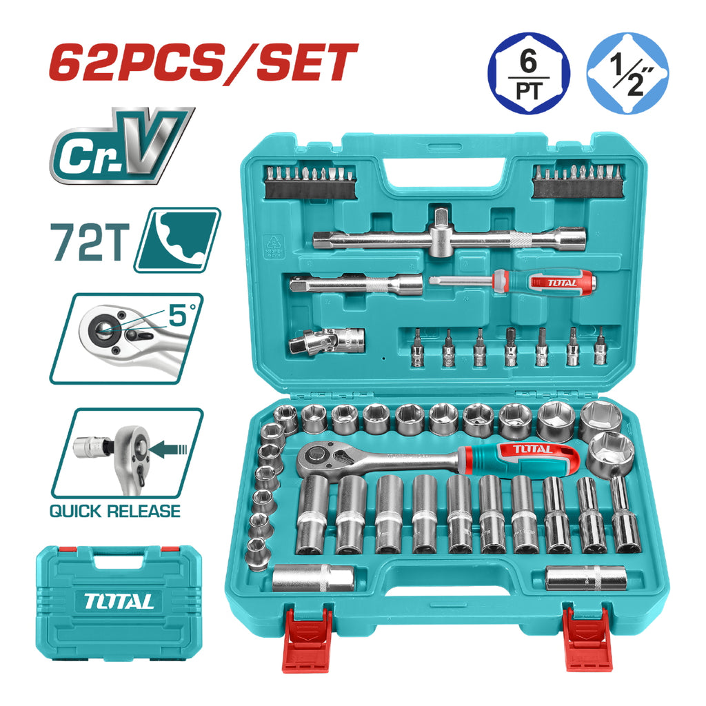 | Características | Kit 1/2" Cr-V 45T. Set 60 piezas variadas. |