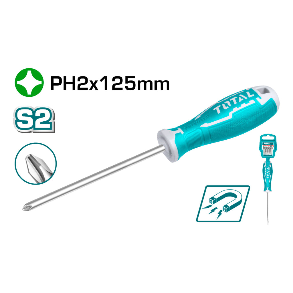 | Características | Destornillador punta Phillips PH2. Excelente calidad para trabajos de aflojar o apretar tornillos. |