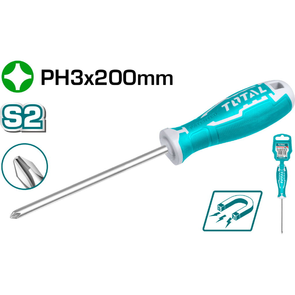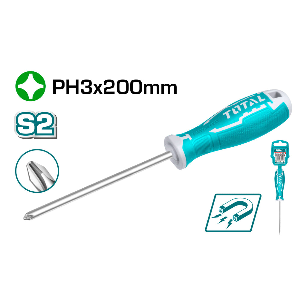 Destornillador de estrella PH3. Diam. 8.0 mm. Largo 200 mm. Cr-V.