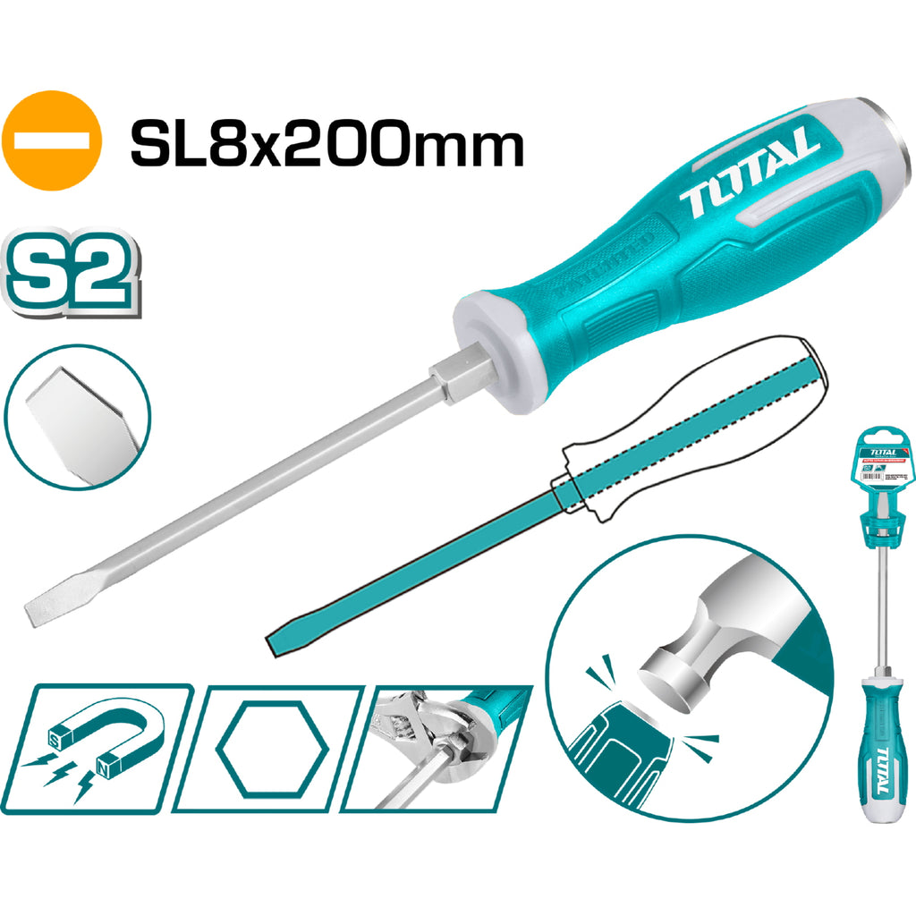 Destornillador Pasante Plano 8X200mm Material De La Hoja: S2 Tipo De Punta: Ranurada. Magnético.