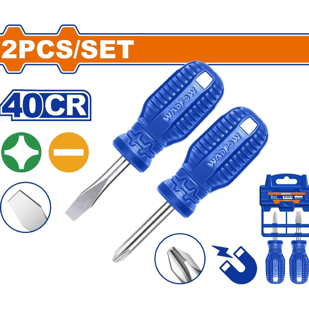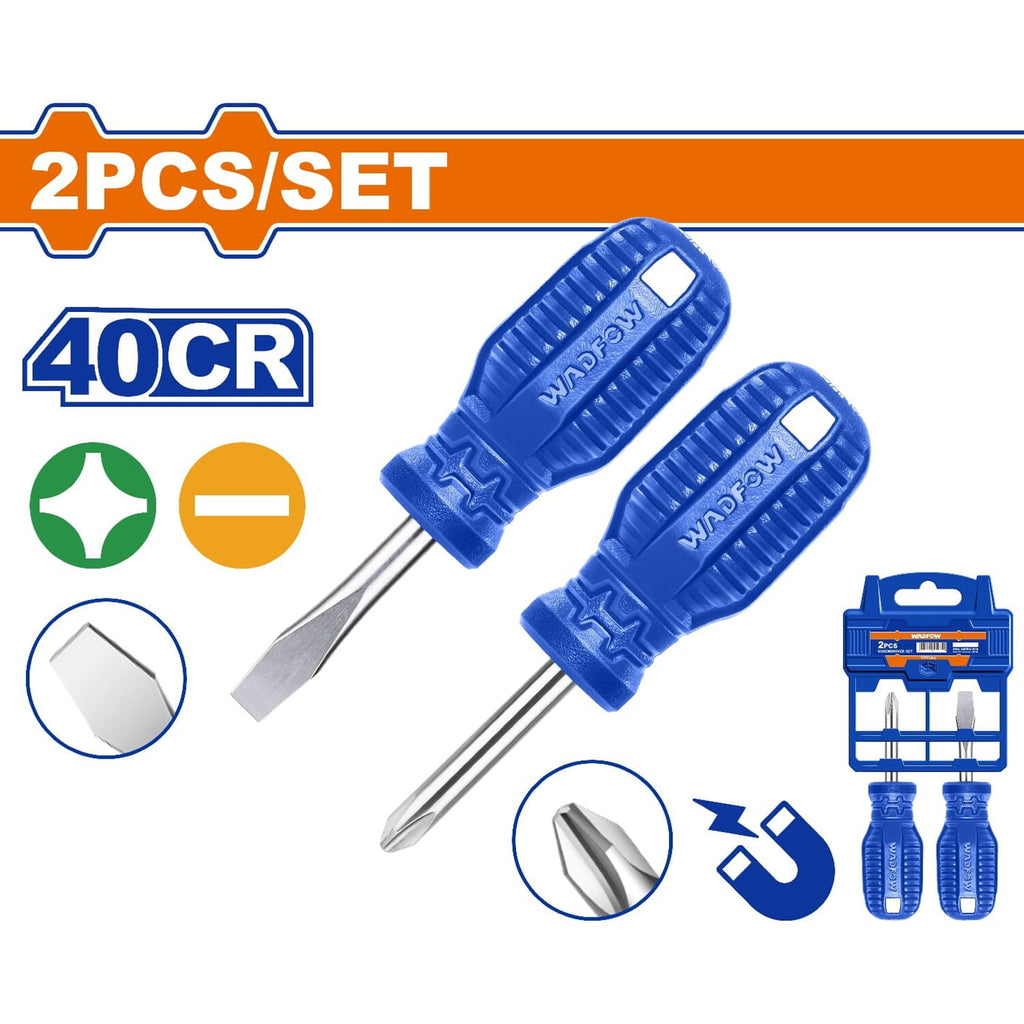 Destornilladores Punta Plana 6.5 X 38Mm Y Estrella 2 X 38Mm. Mango Redondo.40CR. Magnético.(Set)