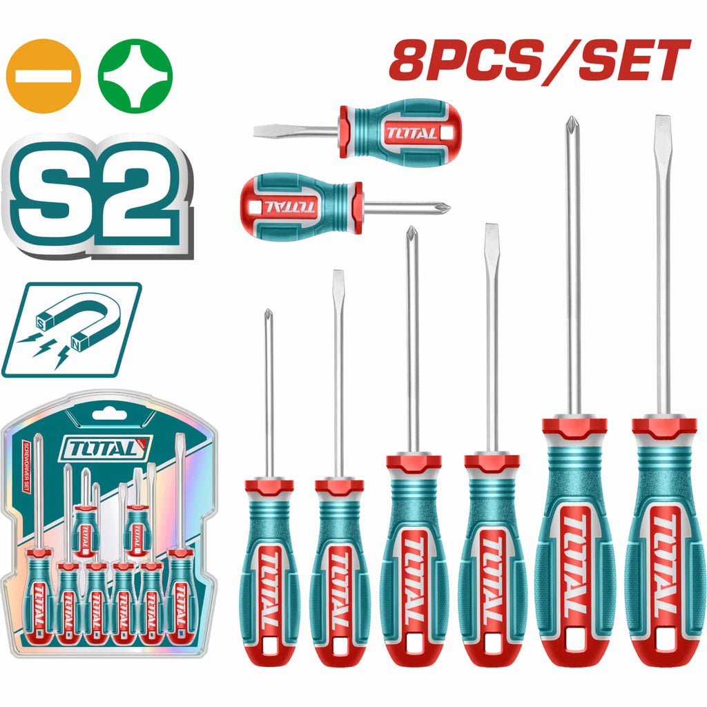 Destornilladores Punta Plana (SL) Y Punta Estrella (PH).CR-V. Magnético. Mango Redondo(Set De 8)