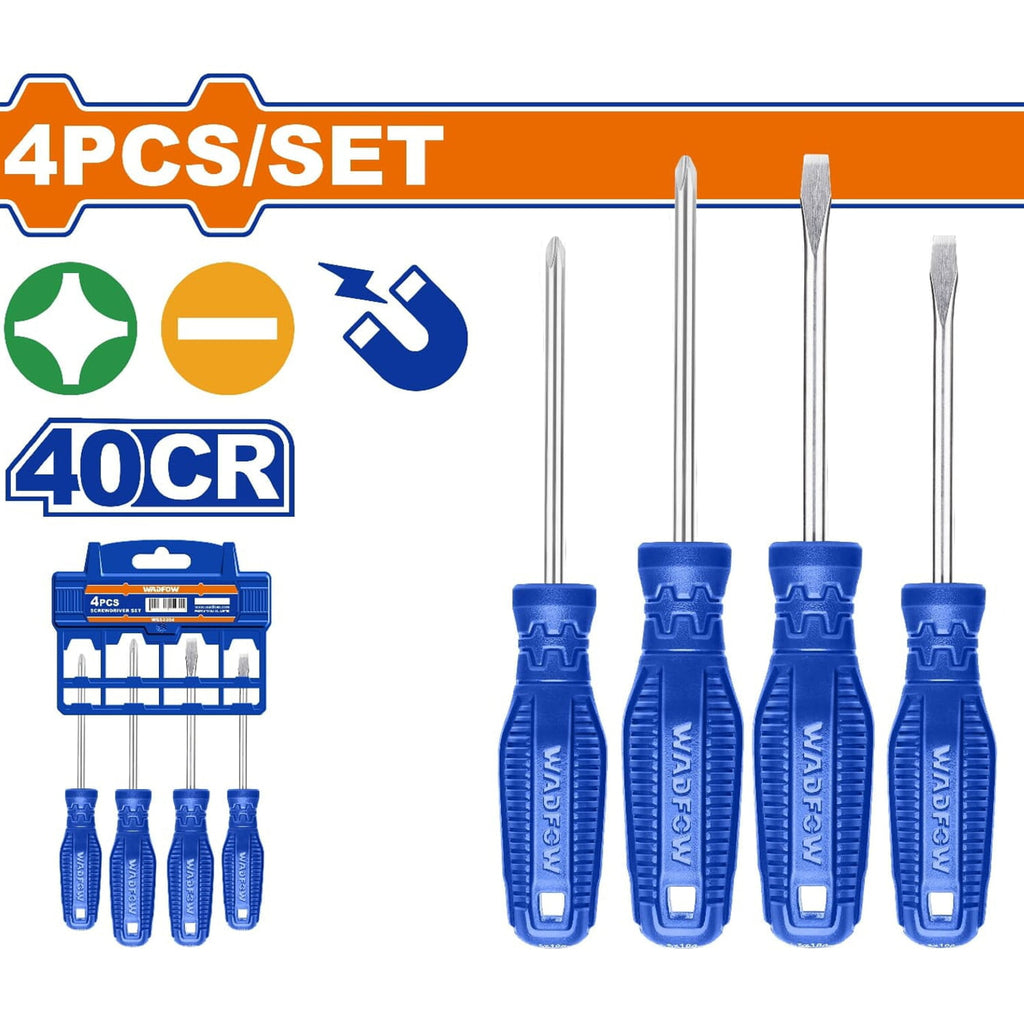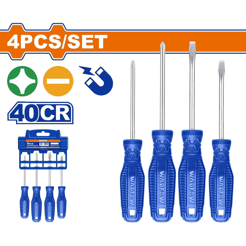 Destornilladores Punta Plana Y Punta Estrella. Mango Redondo. 40CR. Magnético (Juego De 4 Pzs)