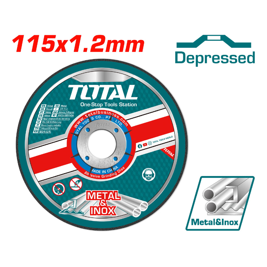 Disco corte de metal y acero inoxidable. 115mm (4-1/2'') x 1.2mm (3/64”) x 22.2mm (7/8'') centro concavo
