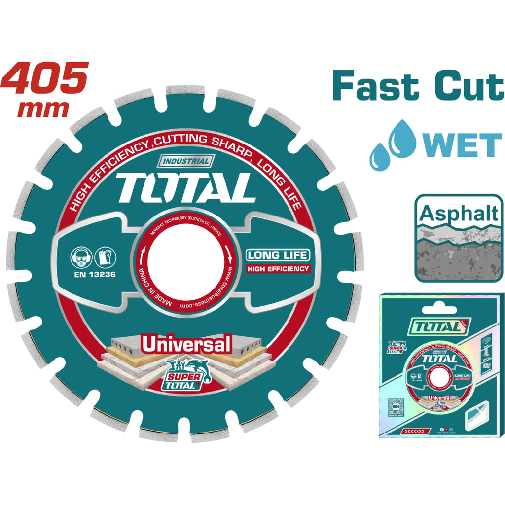 Disco De Diamante Para Cortar Asfalto 405Mm 16" X25.4Mm. Espesor De Hoja 10 Mm. Soldado Con Laser