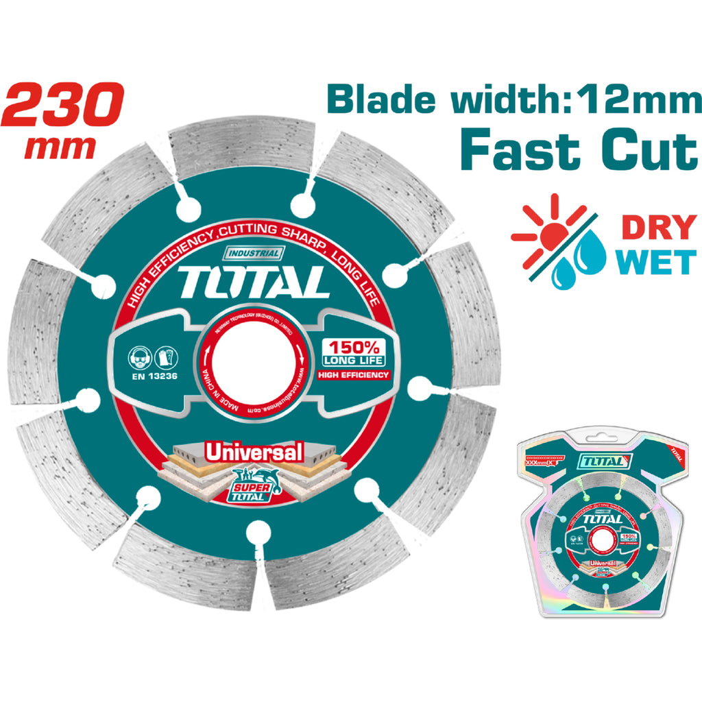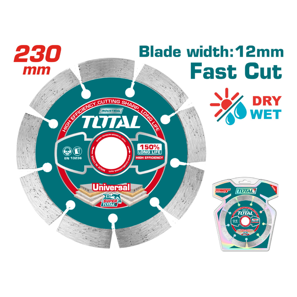 | Características | Disco de diamante para mármol y granito 9" Espesor 12mm Corte seco y húmedo. |