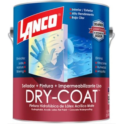 Dry-Coat. Pintura Impermeabilizante. 1 Galon. Blanco Pastel Mate. De Acabado Liso.