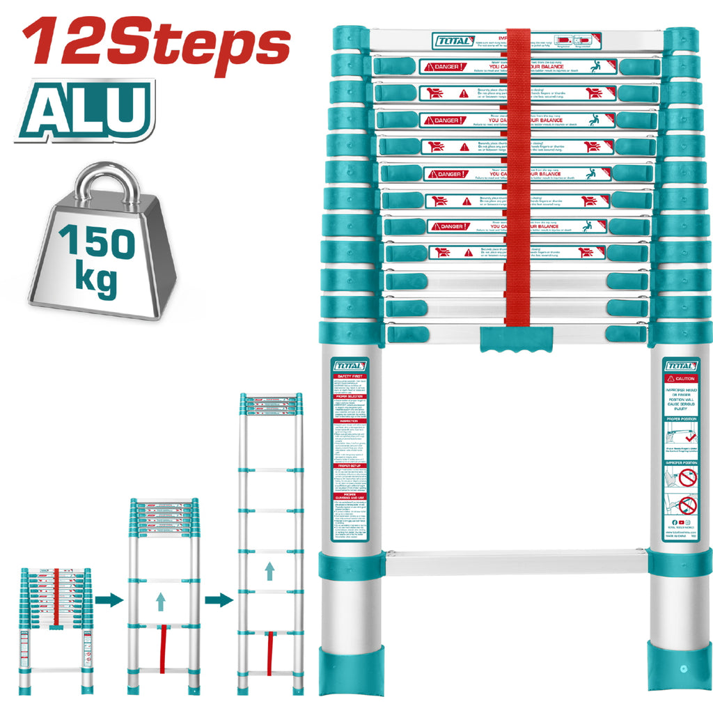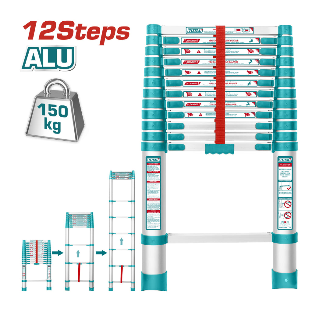 Escalera Telescópica De Aluminio De 12 Escalones.