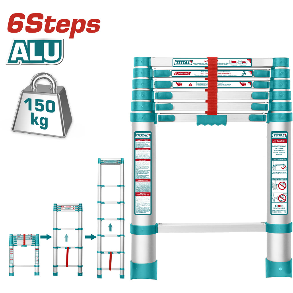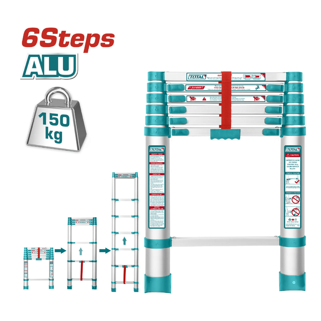 Escalera Telescópica De Aluminio De 6 Escalones.