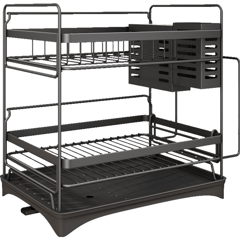 Escurridor de Platos de acero inoxidable, 2 niveles. Color Negro.