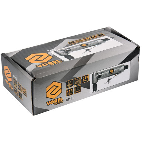 Vorel Amoladora Neumatica Angular De 6 Mm. Tapa De La Amoladora De 1/4” (6 Mm); Rpm De Velocidad Libre 20000 Min-1; Entrada De Aire De 1/4” (6 Mm); Manguera De Aire De 3/8”; Consumo Promedio De Aire De 113L/Min; Aire Comprimido Sugerido 1.5 Hp Esmerila