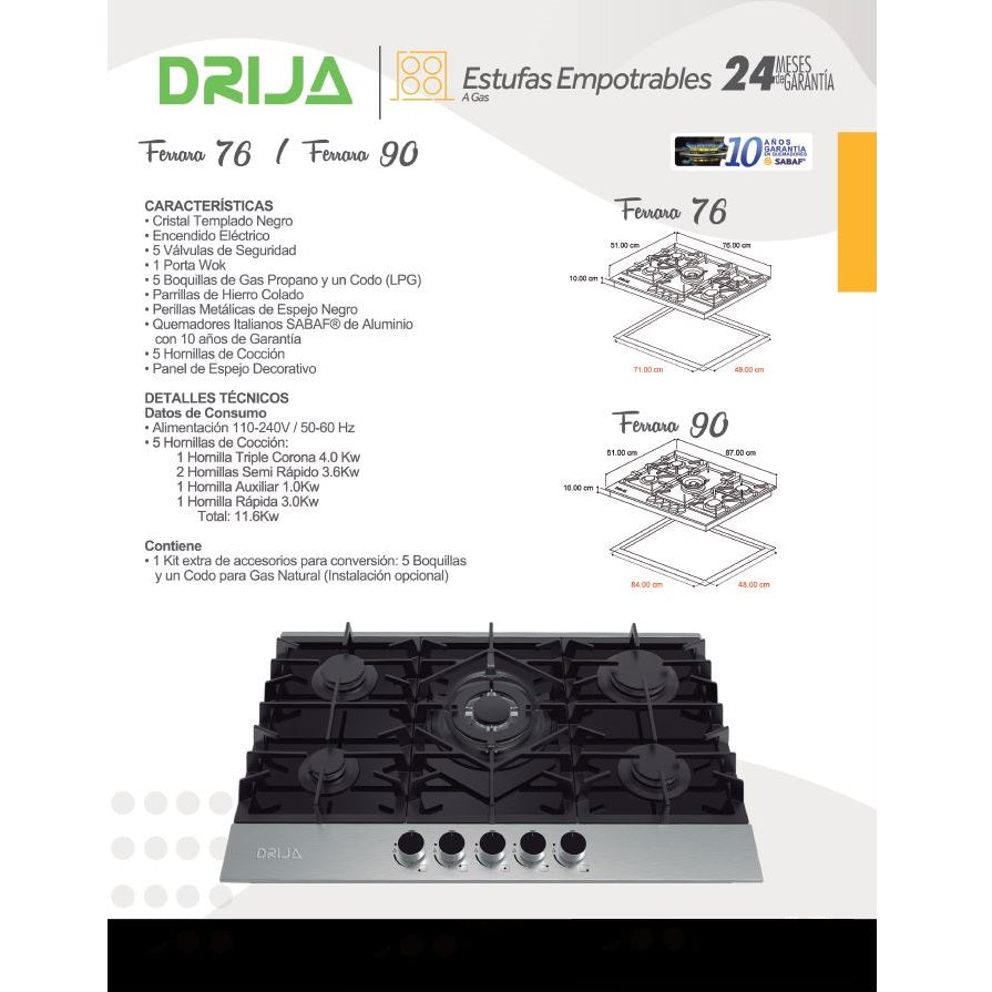 | *Nombre | Estufa a gas, empotrable. Ferrara 76 |