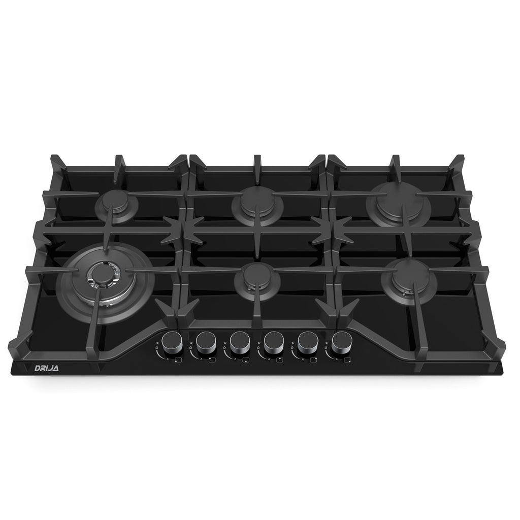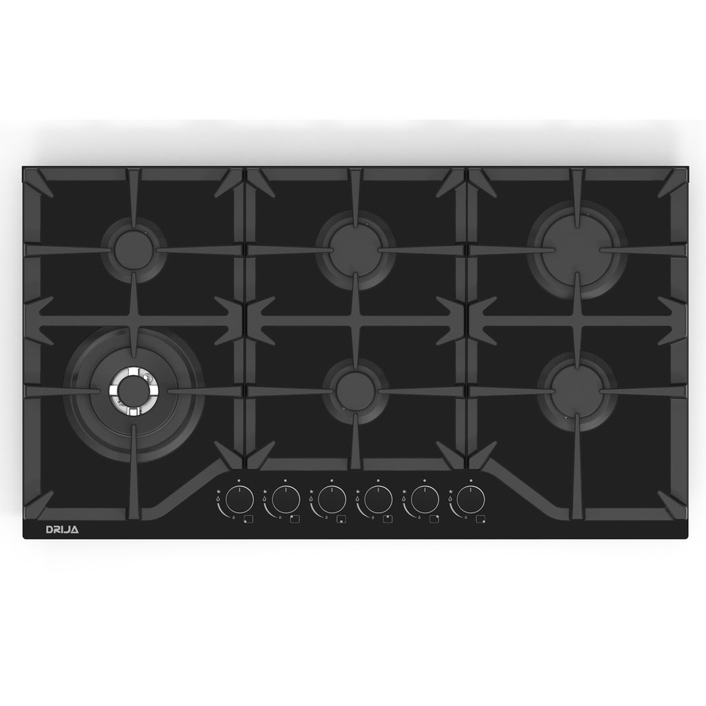 | Materiales | Cristal Negro Templado, Parrillas de Hierro Colado, Perillas Metálicas, Quemadores Italianos SABAF® de Aluminio. |