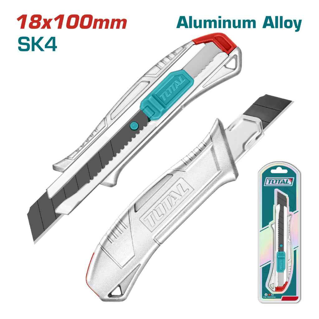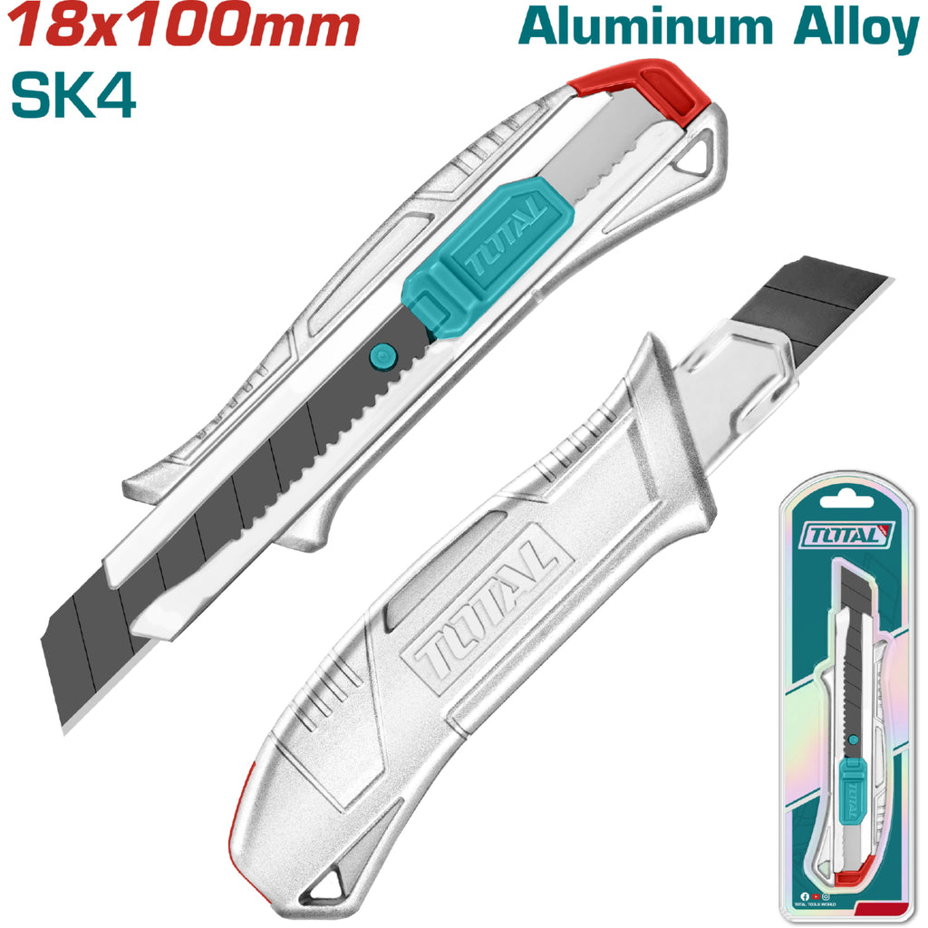 | Características | Cuchilla 18x100mm (THT519112) Aleación de Aluminio. Auto Bloqueo. Botón de Empuje. |