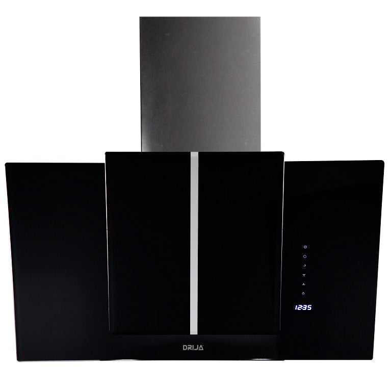 Extractor de Grasa Vetro 76 Professionale. Estilo Chimenea, vidrio templado curvo. Luz LED. Pantalla LCD con reloj digital.