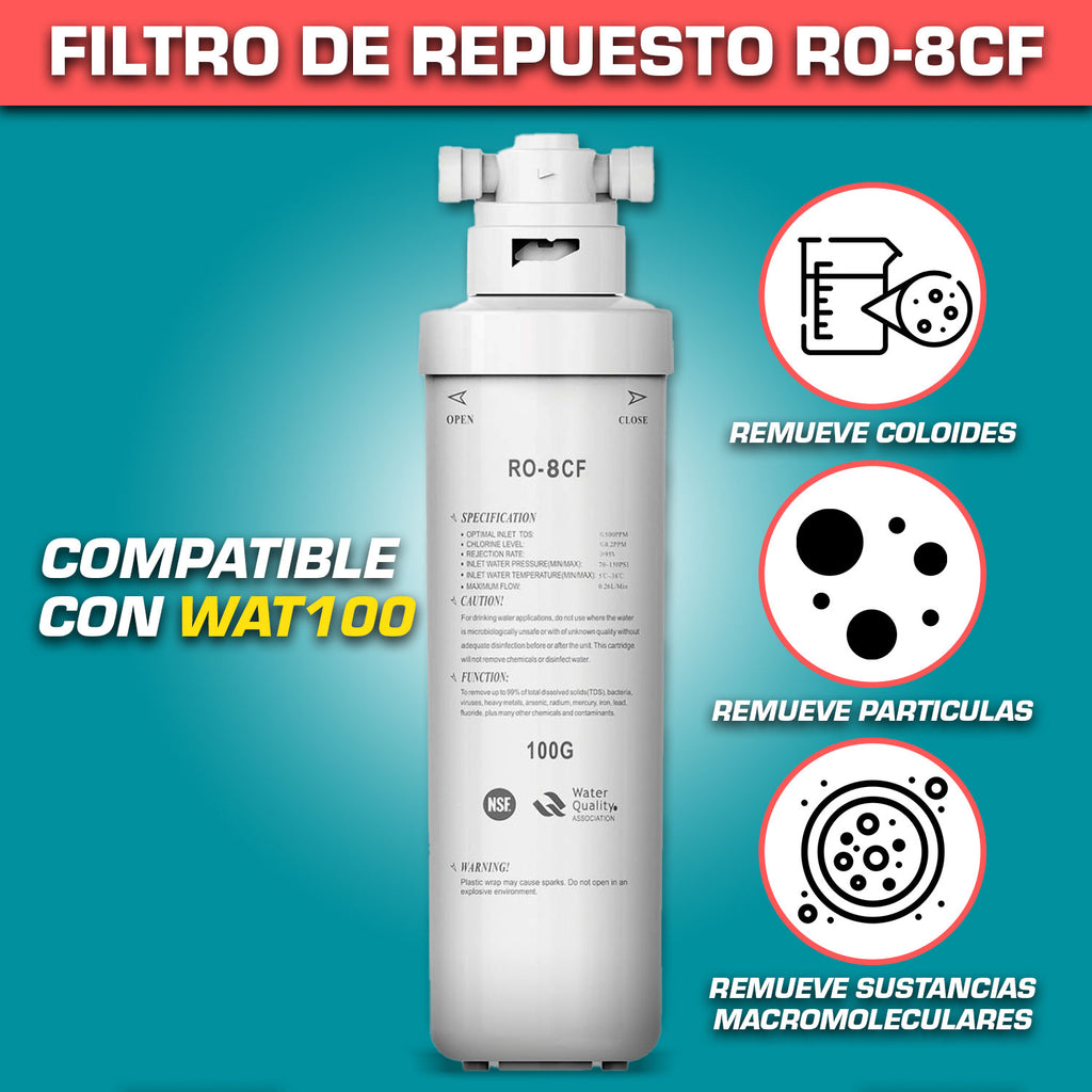 Filtro de repuesto RO-8CF (100G) para WAT100.