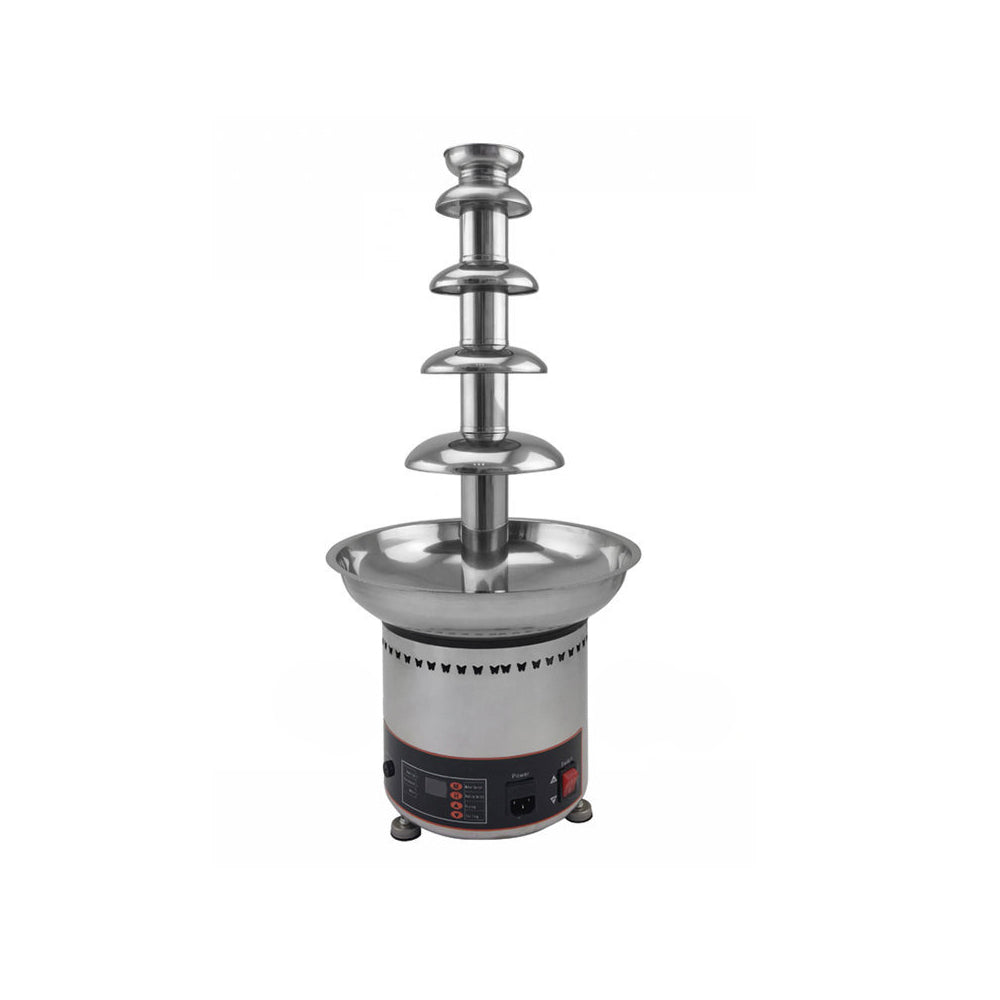 Fuente de chocolate diametro 28 cm altura 58 cm de 4 niveles 150W. Temperatura 30-110C display digital. Motor 60W. 110V60 htz(1 año)