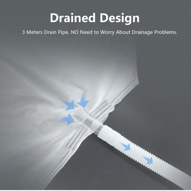 La funda o bolsa para mantenimiento de aire acondicionado tiene el diseño de doble borde laminado, fortalece el sistema a prueba de fugas, duradero. Y también está equipado con una tubería de agua de 3 metros, que puede recibir agua en cantidades limitadas.
