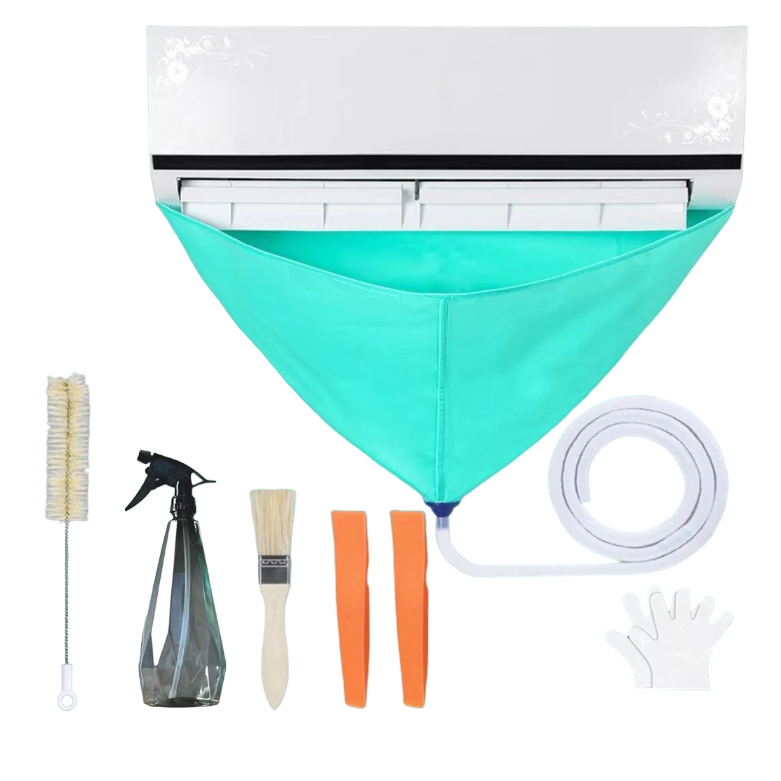 Kit de limpieza de aire acondicionado impermeable con puerto de drenaje, manguera y accesorios de 8 piezas.