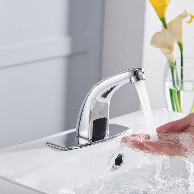 Grifo automatico con sensor para lavamanos. Funciona a Baterias dc 6v o 110V plug. Para agua fria. Incluye manguera de 1/2''. Conector de Sensor de 1/2''. Ideal para industria alimenticia para evitar el contacto.