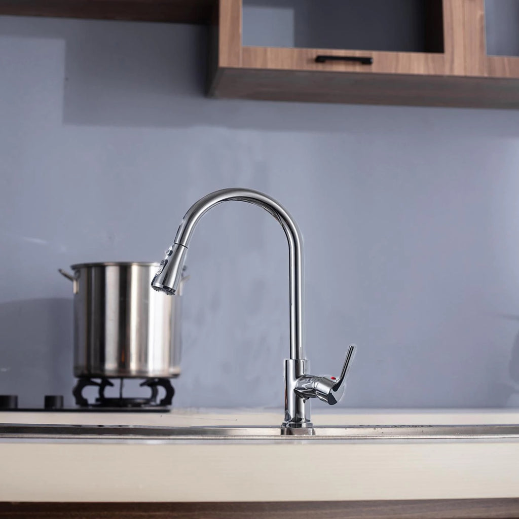 Grifo Para Fregador De Cocina Con Manguera Extraíble, Color Metal Cromado