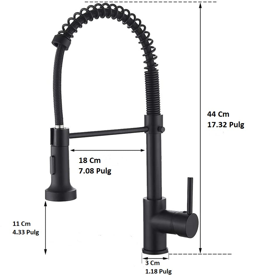| *Nombre | Grifo para Fregador de Cocina con resorte extraible, Negro Mate. |