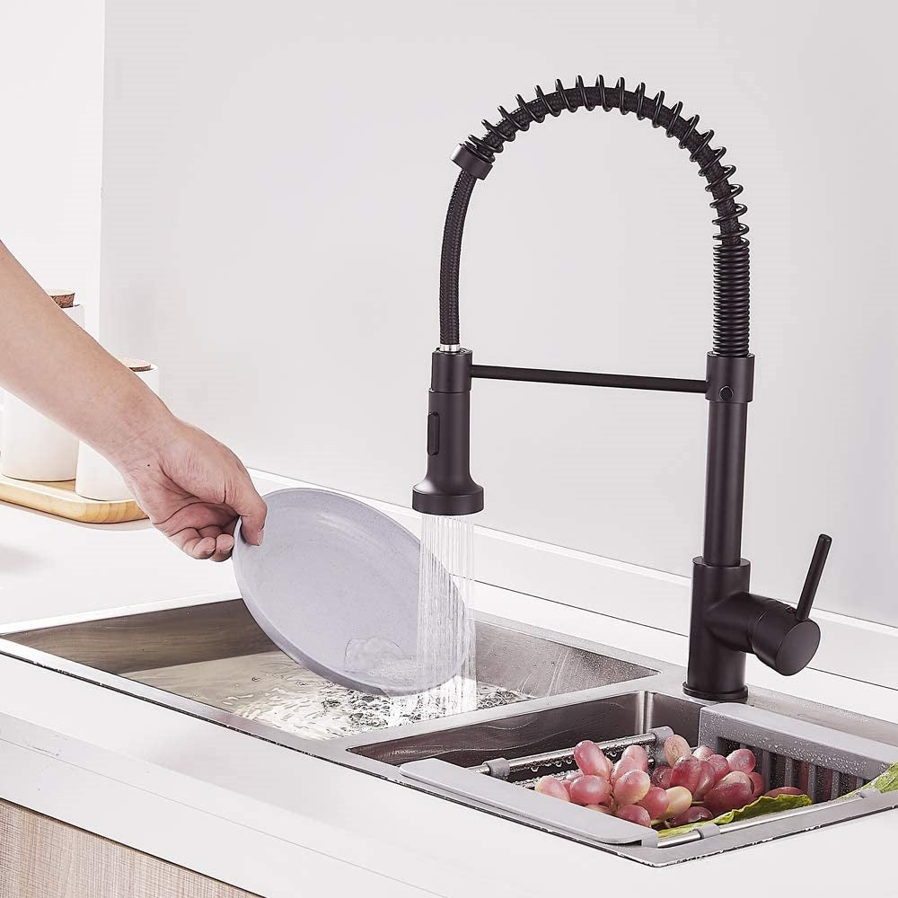 Grifo para Fregador de Cocina con resorte extraíble, Negro Mate.