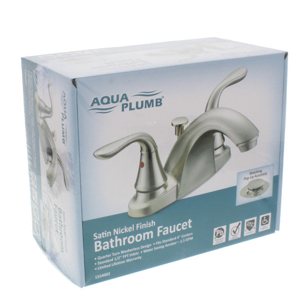 Grifo de baño con acabado en níquel satinado para lavamanos. Incluye tapa de drenaje
