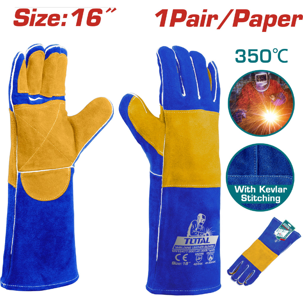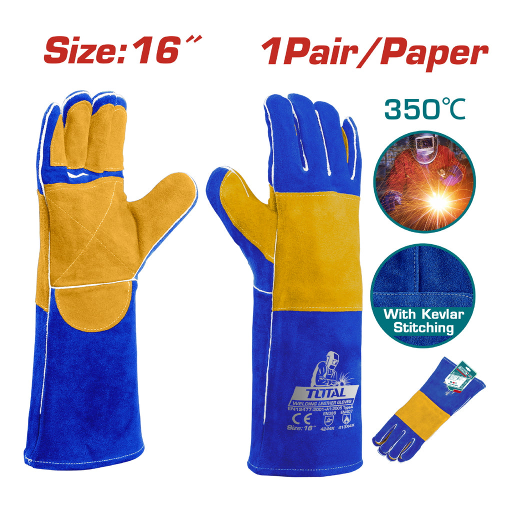| *Nombre | Guantes para soldar 350°. Talla 16" Alta temperatura. Cuero de Vaca. Tejido en Kevlar. (Par) |