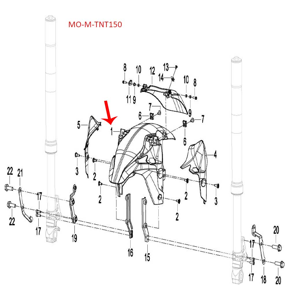 | *Nombre | Guardabarro delantero blanco con calcomanias (TNT150) |