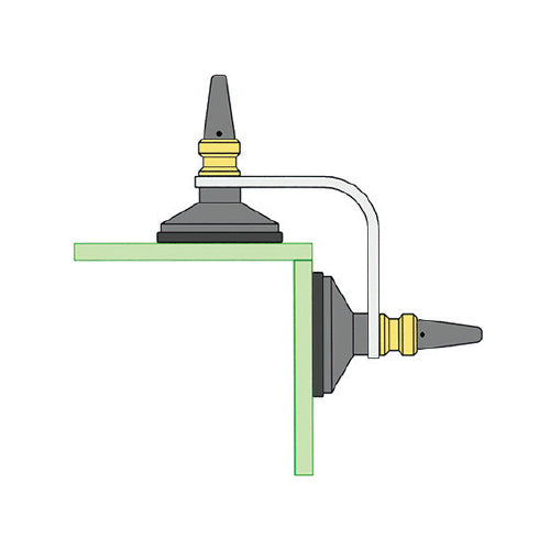 Herramienta de montaje Exterior. Sostiene paneles de vidrio desde el exterior con ángulo de 90° para posicionar y poder pegar fácilmente vidrios con pegamento UV o adhesivo de silicona. Ventosas de goma Ø60mm.