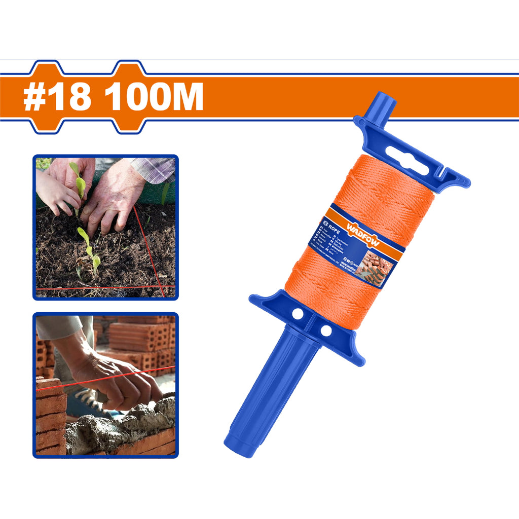 | Características | Hilo de albañil #18 Tipo de sujeción: cuerda retorcida no metálica Color: naranja Diámetro de la cuerda: 1.5mm Longitud: 100m Material: 100% nuevo PP (polipropileno) |