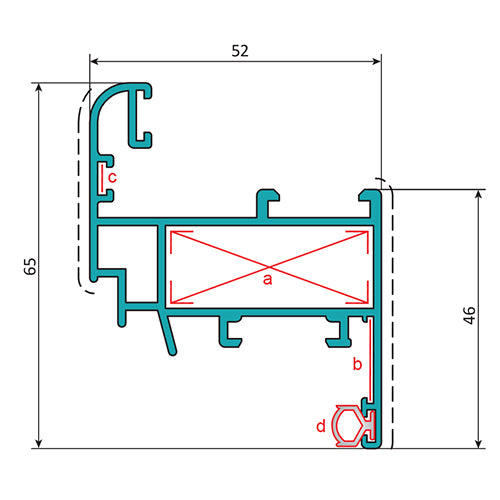 Hoja Ventana Abatible52x65mm. Espesor 1.4 mm. Largo 5.85 mts. Acabado Anodizado Silver 15 Micron.
