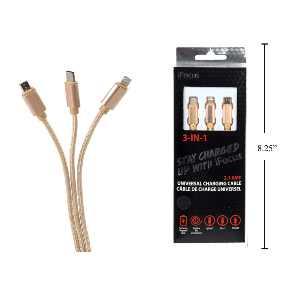 iFocus, cable de carga y sincronización 3 en 1 de 1,2 M, dorado, bandeja cbx +
