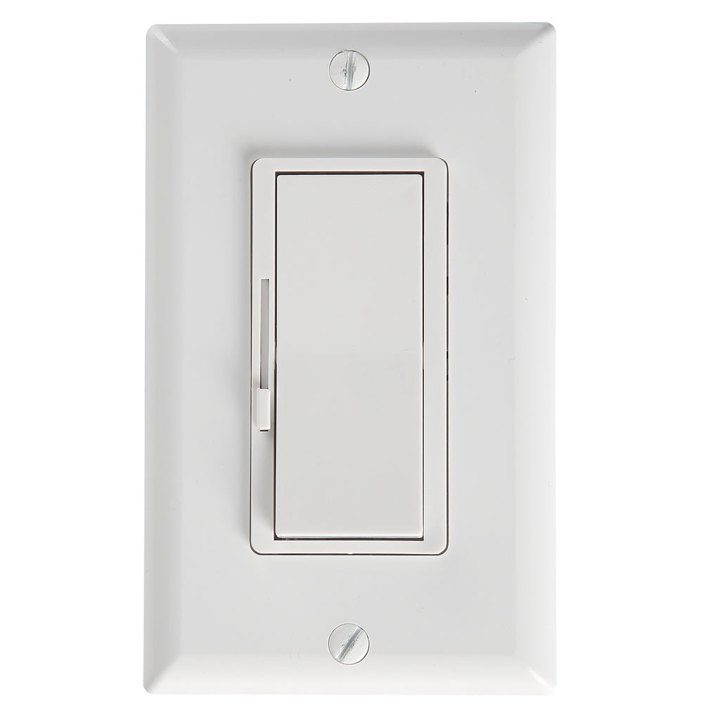 Interruptor Decorativo Con DIMMER. 2 Polos/3Wire. 15A-125Volt. 60Hz. 600 Watt. Incluye Tornillos. Material Metalico-Plastico-Cobre. Color Blanco. Empaque Bolsa Plastica Color con Codigo de Barra.