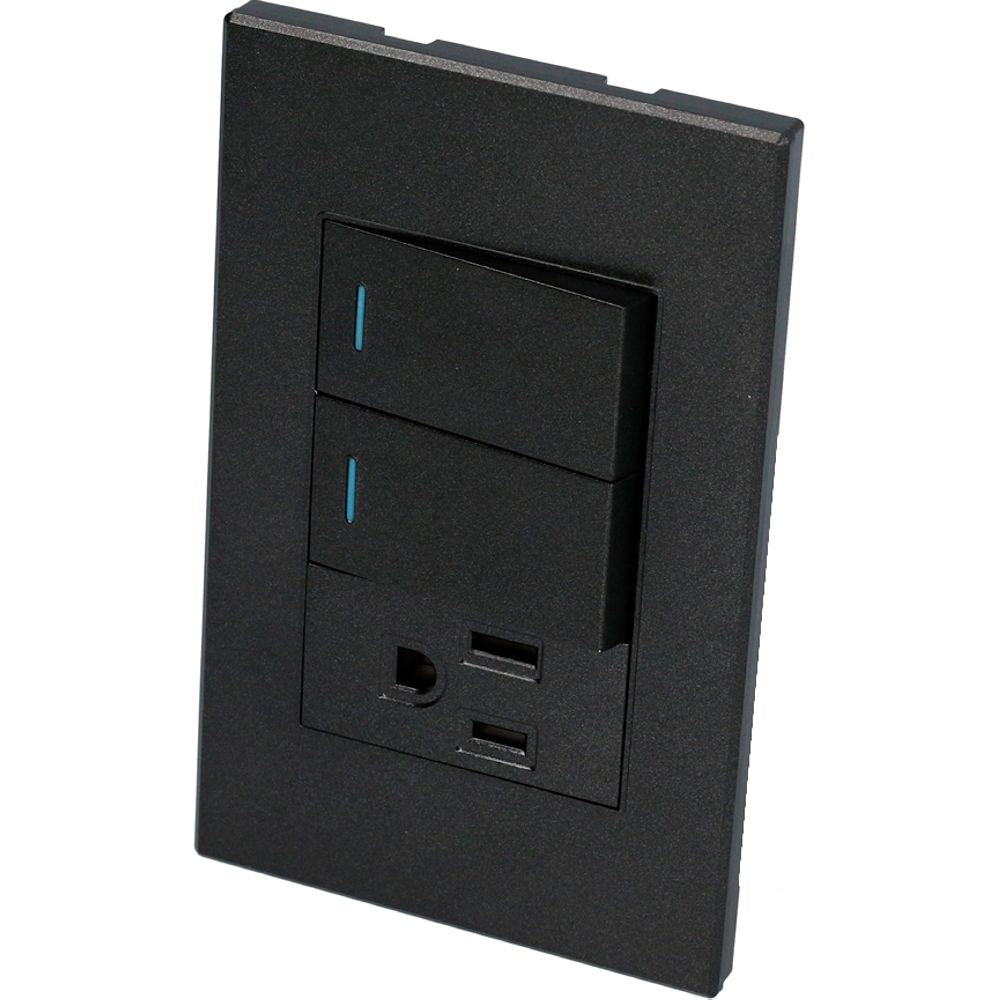 | *Nombre | Interruptor/Enchufe con 2 apagadores 1 contacto negro 1/3 . |