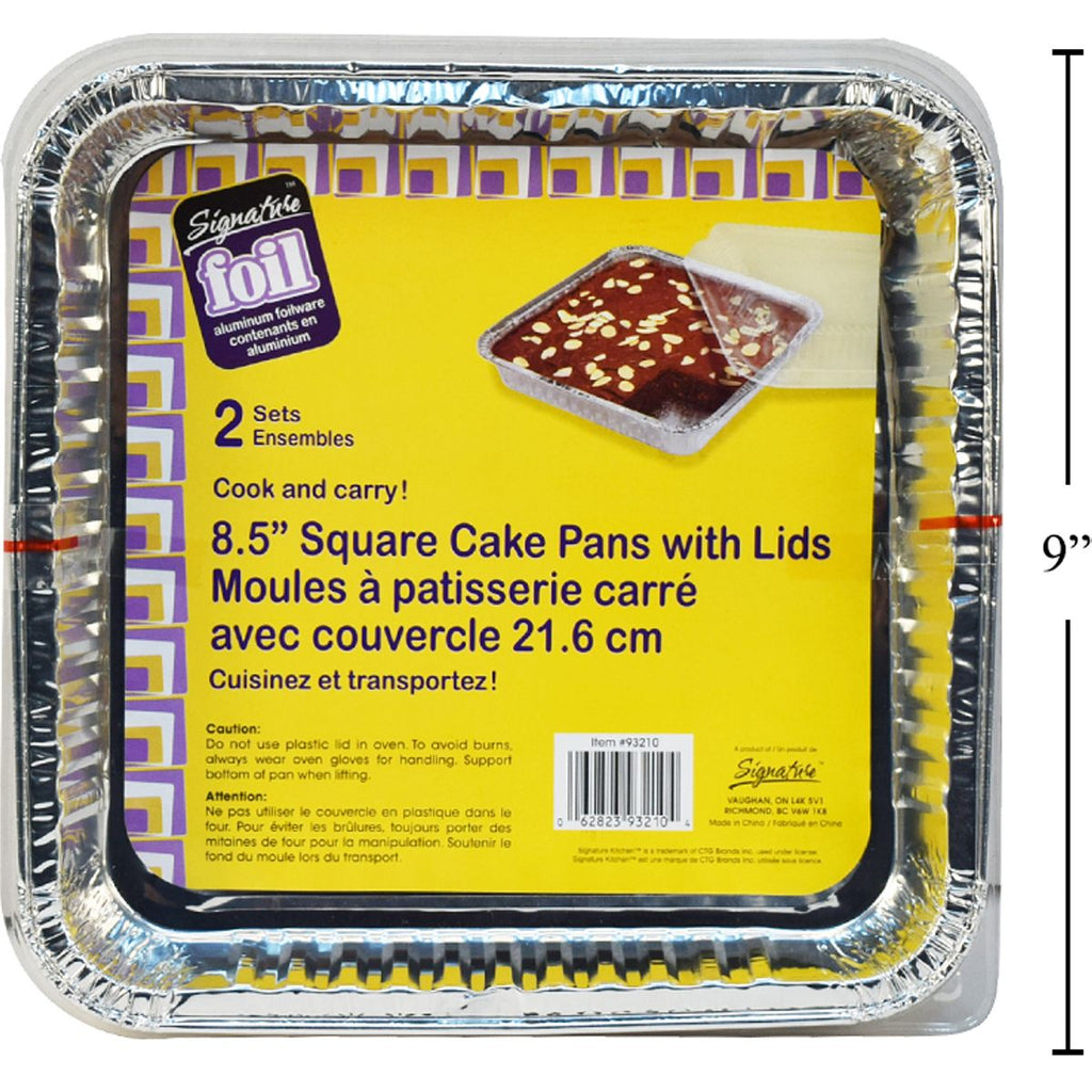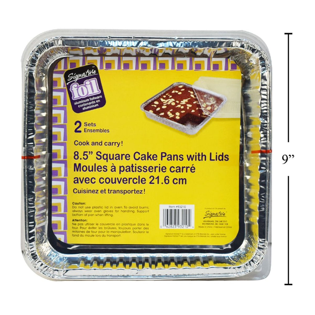 Juego De 2 Moldes Y Tapas Para Pasteles Cuadrados De Papel De Aluminio, 8 5/8 X 8 5/8 X 1 1/2 ".