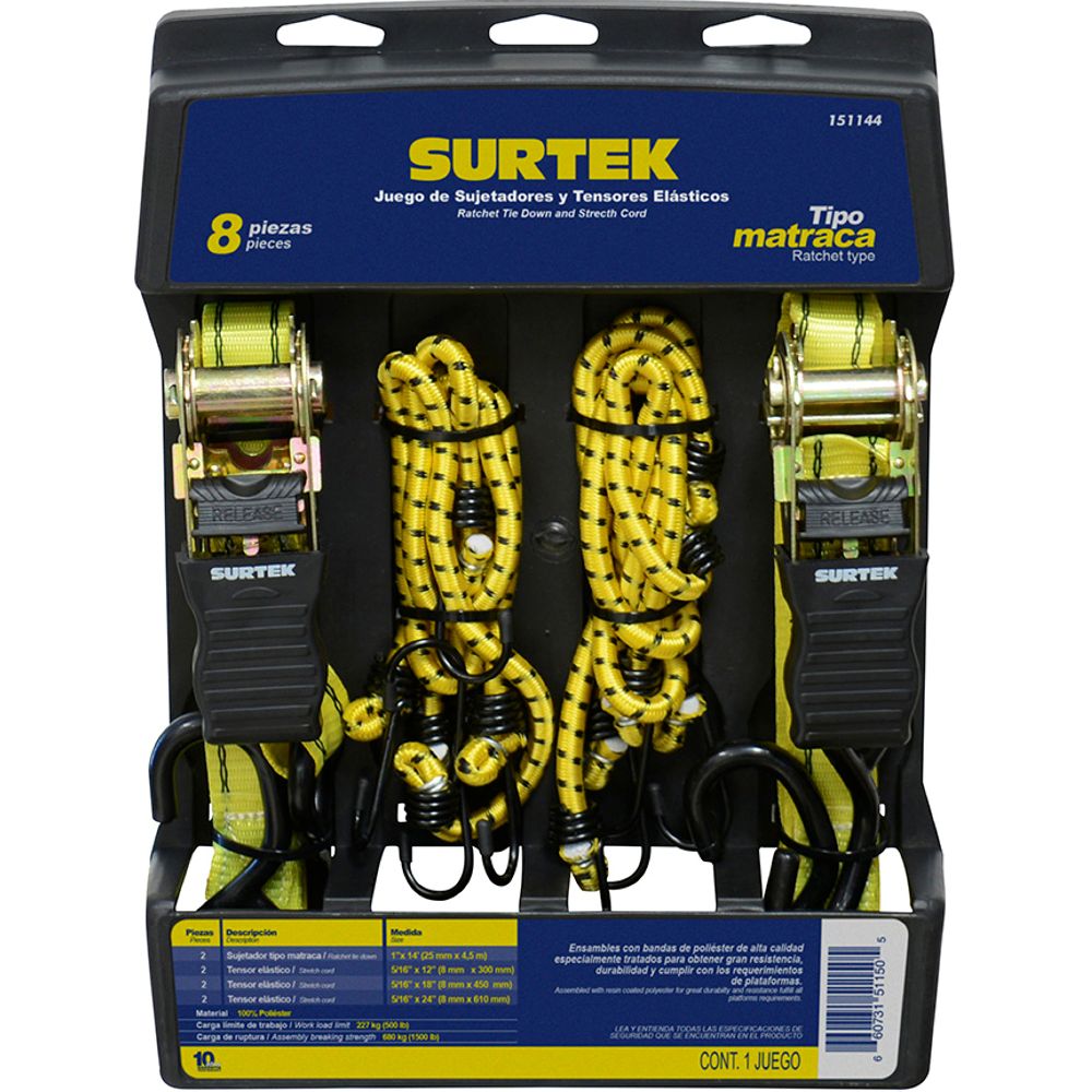 -Marca Surtek -Contenido: 2 Suejtadores De 25 Mm 4.5 M - 2 Tensores Elástico