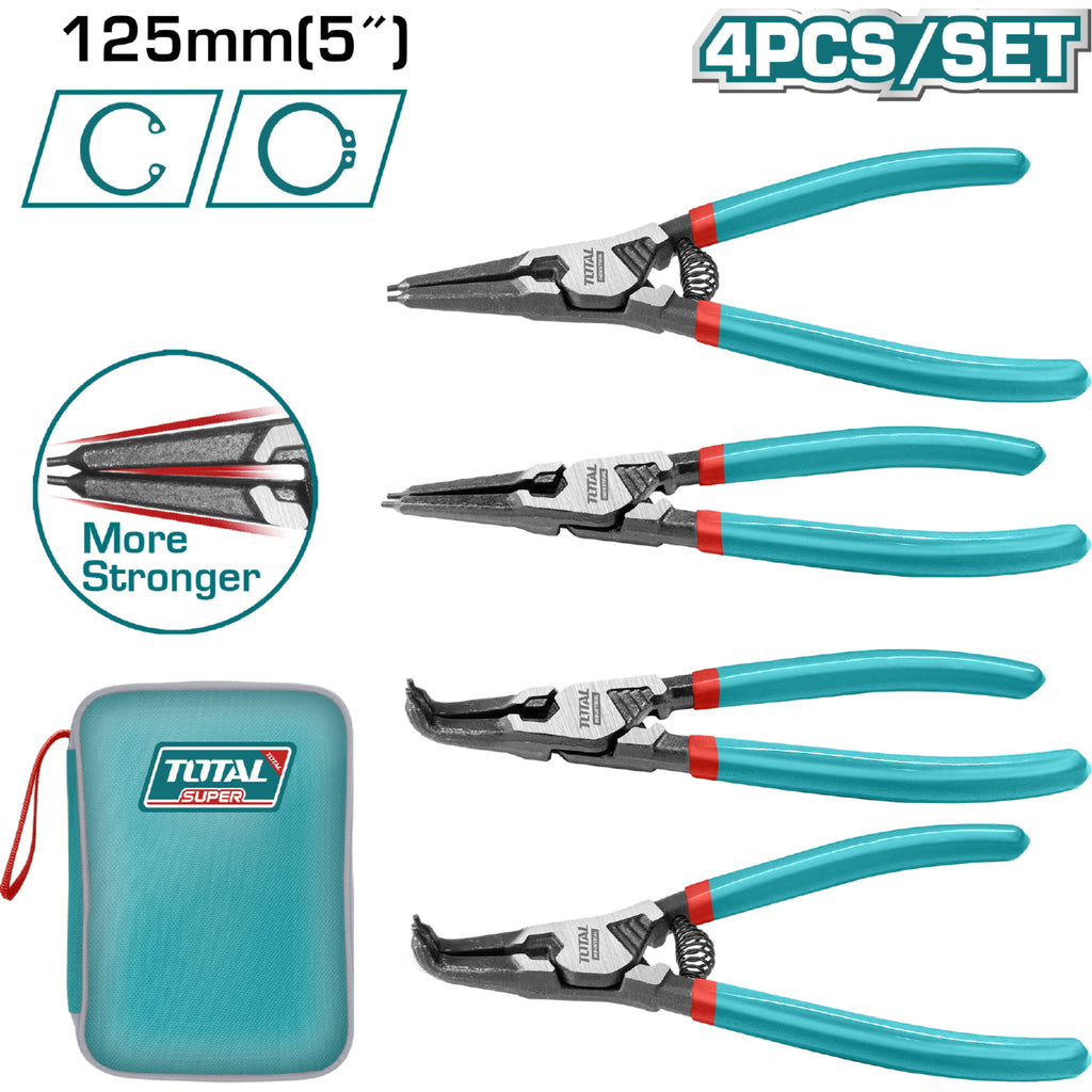 Juego de Alicates para Anilllos de Retencion de 7''/180 mm de 4 piezas. Diametro: 1.8 mm. Acero Inoxidable. Incluye: 2 Alicates de 180°y 2 Alicates de 90°.