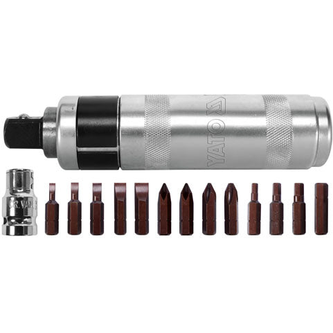 Yato Juego De Destornillador De Impacto De 15 Piezas: Dado Crv, Cromado, Longitud Del Destornillador De Impacto: 160 Mm, 13 Puntas Magneticas S2 De 35 Mm: Planas: 4, 5, 6, 8, 9, Hexagonales: H4, H5, H6, H8, Philips: Ph1, Ph2, Ph3, Ph4. Destornillador D