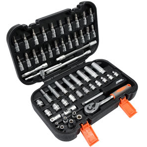 Sthor Juego De Herramientas (1/4'', 56 Piezas). Todos Los Dados: 6 Puntas, Material: Acero Al Carbono, 2 Tonos Con Moleteado En Torno, Regular (1/4''), Din 3121, Sistema As-Drive, Longitud: 25 Mm, 12 Piezas (4 Mm, 4.5 Mm, 5 Mm, 5.5 Mm, 6 Mm, 7 Mm, 8 Mm,