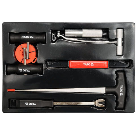 Yato Juego De Herramientas Para Retirar El Parabrisas. 7 Piezas: Alambre De Corte (Material: Inoxidable), 2 Piezas De Mango De Sujecion De Alambre, Herramienta De Remocion De Parabrisas, Herramienta De Alimentacion De Alambre, Herramienta De Remocion D