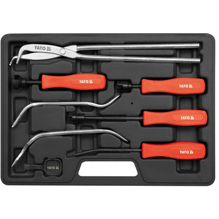 Yato Juego De Herramientas Profesional Para Frenos. 8 Piezas: Compresor De Muelle, Instalador De Muelle De Freno, Herramienta De Remocion De Muelle, Herramienta De Muelle De Retencion Del Freno, Pinzas Para Muelle De Freno, 2 Piezas De Llaves De Cuchar