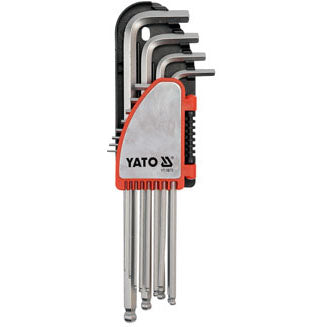Llaves Hexagonales Extralargas S.A.E. Con Punta Redonda, Tamaños: 1/16'', 5/64'', 3/32'', 7/64'', 1/8'', 9/64'', 5/32'', 3/16'', 7/32'', 1/4'', 5 /16'', 3/8'', S2, Dureza Rockwell: Hrc 58-62, Acabado Satinado, Logotipo De Yato, Tamaño Y Numero De Item Impresos. J