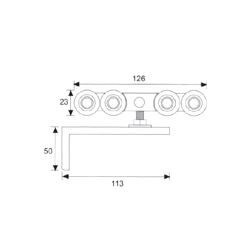 Juego de Rodachines para puertas corredisas. Incluye 2 rodachines de 8 ruedas y accesorios. El par soporta 110 kg. Usar rieles TD-AL03